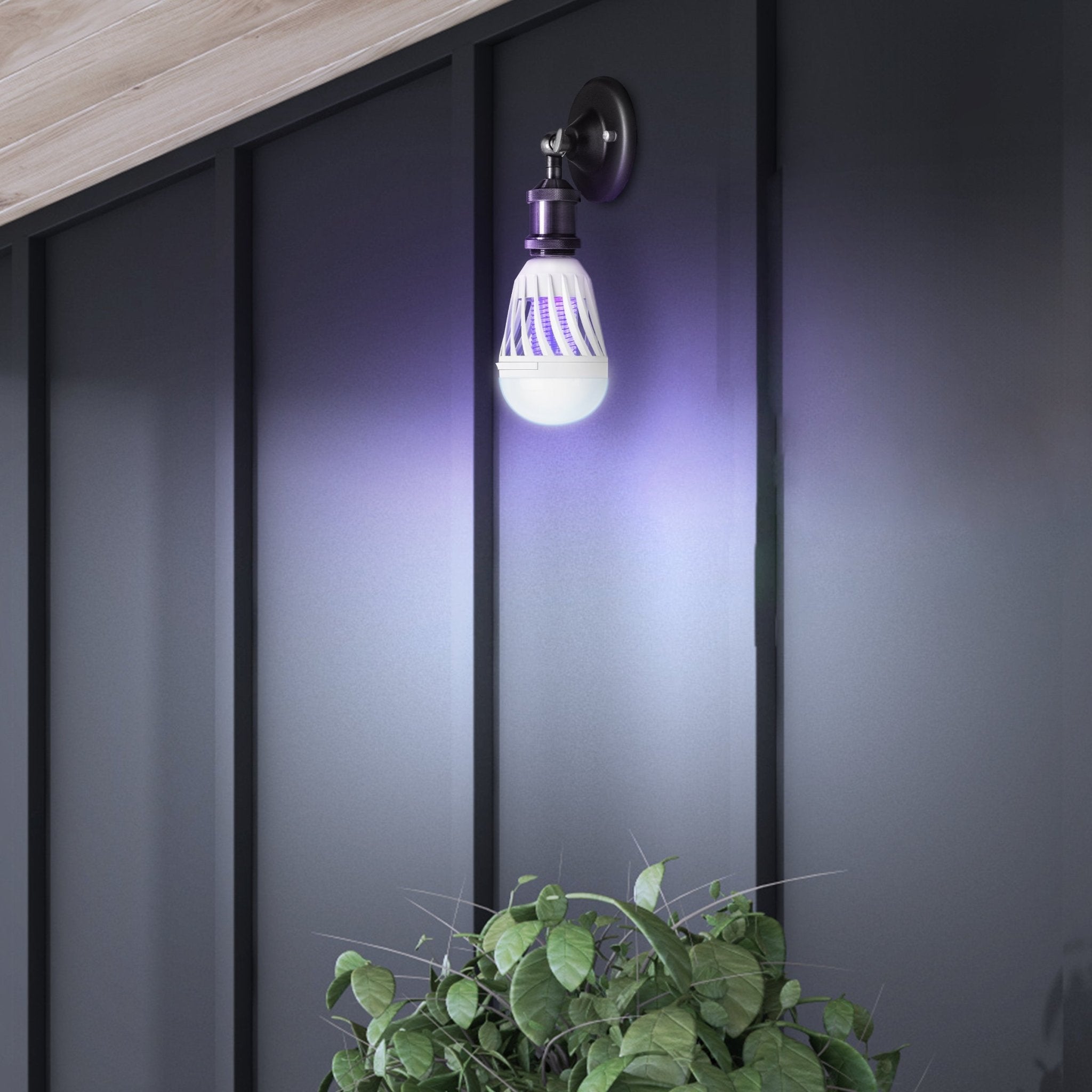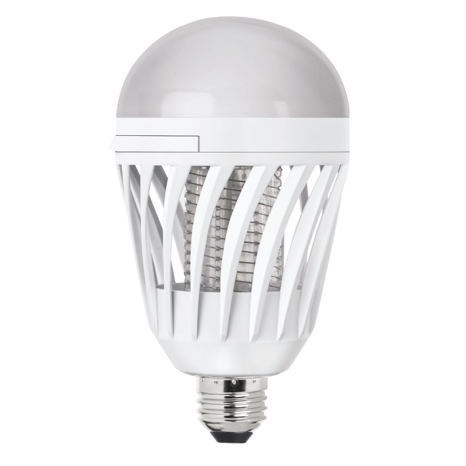 Zap away annoying bugs and insects with this advanced Feit Electric dual-purpose bug zapper and LED light bulb. Ideal for indoor or outdoor use, the zapper employs 5000K Daylight White light and blue UV light to attract flying insects and kill them on site. The bug zapper is a chemical-free solution with a protective outer cage for safe installation and a removable tray for hassle-free clean-up. This non-dimmable LED bug light will replace a 60-watt equivalent incandescent bulb using only 9 watts of electricity. With a 3-way switch control, you can change from LED-daylight light to blue UV light for zapper use or use combined light and zapper together. The Feit Electric C60/950CA/BZ/LED bug zapper has an average life of 15,000 hours, is RoHS compliant and is 100% mercury free