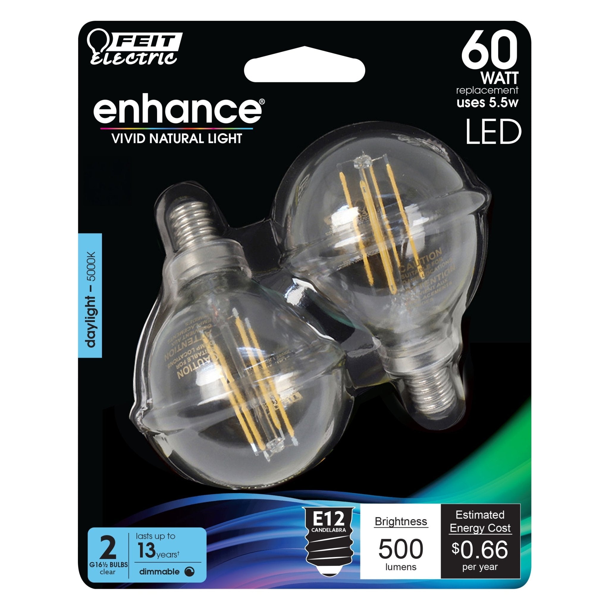 Enjoy classic style and modern reliability and energy savings, with the Feit Electric Enhance Filament LED light bulbs. Featuring our highest quality and most energy efficient light, this beautiful high performance bulb has a high (CRI) of 90+ so colors appear more realistic and vibrant. Combining innovative LED technology with filament strips, the bulbs provide the benefits of LEDs with the look of a traditional bulb. Filament LEDs will last for years, and use just a fraction of the energy of an incandescent, saving you time and money. The versatile Globe LED energizing daylight is fully dimmable and suitable for a variety of decorative fixtures including bath and vanity and pendant lights